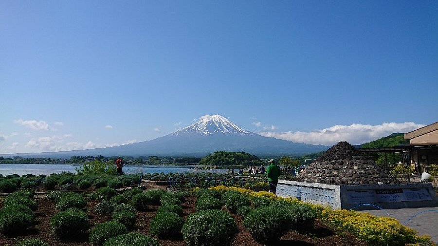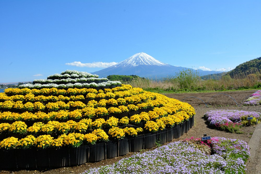 Lakeside flower beds frame Mt. Fuji in every season, from lavender to crimson kochia. You stroll the shore and watch Fuji mirrored on still water.